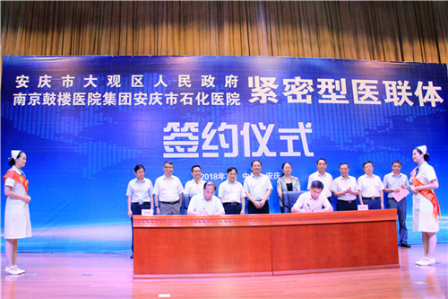 7月31日,安慶市大觀區(qū)人民政府、南京鼓樓醫(yī)院集團安慶市石化醫(yī)院緊密型醫(yī)聯(lián)體在石化會議中心正式簽約。
