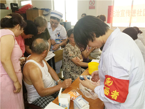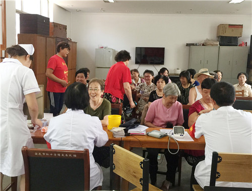 在一片歡聲笑語中,大家忙碌起來,量血壓、測血糖、發(fā)放健康宣教材料,現(xiàn)場秩序井然。志愿者們用豐富的專業(yè)知識和臨床經(jīng)驗為老人們講解高血壓、冠心病、糖尿病等慢性病和老年病的健康防治知識;陳寶龍主治醫(yī)師坐診解答疑問,提供用藥指導(dǎo);疏平副護士長作“老年人如何安全度夏”專題宣教,普及老人夏天防暑的重要性及安全度夏常識,傳播健康生活理念,精彩授課受到一致好評。