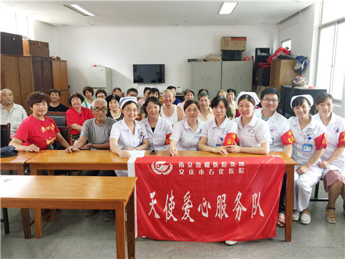 7月11日下午,“天使愛心服務(wù)隊”志愿者王勤支、梁安萍、疏平、黃安莉、腎內(nèi)科陳寶龍及楊秀飛、菱北社區(qū)王君在護理部劉風(fēng)英主任的帶領(lǐng)下,與盛塘社居委的工作人員一起,走進菱北老年活動中心。
