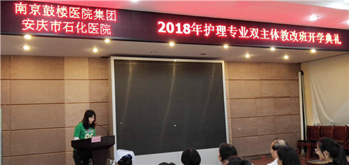 護理部主任劉風(fēng)英代表醫(yī)院對新生表示熱烈歡迎并致辭。回首過去的三年,學(xué)校和醫(yī)院師生們精誠團結(jié),收獲了碩果與感動,院校領(lǐng)導(dǎo)和全體師生們共同經(jīng)歷了護理教改班從最初的磨合、適應(yīng)到后來的默契、親密。她勉勵同學(xué)們要更加奮發(fā)努力,腳踏實地,修身自律,勇爭上游,用優(yōu)異的的成績回報院校領(lǐng)導(dǎo)及老師。