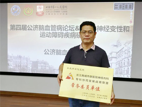 近日,為提升長三角區(qū)域神經(jīng)系統(tǒng)疾病臨床診治水平,由上海市第一人民醫(yī)院、浙江省人民醫(yī)院、江蘇省人民醫(yī)院和安徽省立醫(yī)院共同發(fā)起的“長三角城市群醫(yī)院神經(jīng)內(nèi)科??茀f(xié)同發(fā)展戰(zhàn)略聯(lián)盟”在上海成立。我院神經(jīng)內(nèi)科加入該聯(lián)盟,我院也成為聯(lián)盟常務(wù)委員單位。