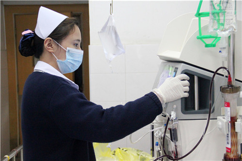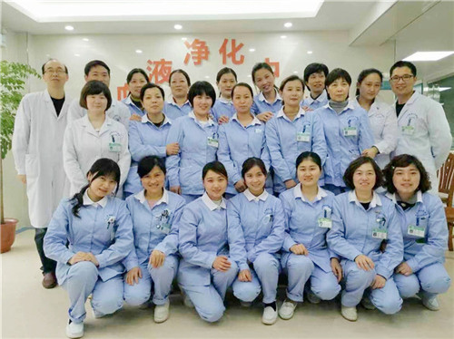 血液透析過程中有專業(yè)醫(yī)護(hù)人員全程監(jiān)控,嚴(yán)把透析質(zhì)量關(guān),讓患者和家屬毫無(wú)后顧之憂。這支優(yōu)秀的醫(yī)療團(tuán)隊(duì)由何曉旋主任醫(yī)師負(fù)責(zé),他同時(shí)還是蚌埠醫(yī)學(xué)院碩士研究生導(dǎo)師,從事臨床工作30余年,具有良好的管理經(jīng)驗(yàn)和嫻熟的臨床技術(shù),在血管通路的建立、維護(hù)及并發(fā)癥的處理方面形成了獨(dú)有特色,能熟練開展鼻咽窩內(nèi)瘺、標(biāo)準(zhǔn)內(nèi)瘺、高危內(nèi)瘺、自體血管內(nèi)瘺移植手術(shù),人工血管內(nèi)瘺、假性動(dòng)脈瘤切除,頸內(nèi)靜脈、鎖骨下靜脈、股靜脈長(zhǎng)期導(dǎo)管置入術(shù)等,手術(shù)內(nèi)瘺切口小且美觀,直徑不到1CM,血流量充足,能充分保護(hù)血管資源。中心還有2名高年資主治醫(yī)師和1名住院醫(yī)師,均為碩士研究生,能熟練處理、搶救血液凈化的危重癥患者,并針對(duì)每一位尿毒癥患者單獨(dú)建檔,實(shí)現(xiàn)個(gè)體化透析。22名護(hù)士組成的護(hù)理團(tuán)隊(duì)技術(shù)過硬,其中,副主任護(hù)師1名,安徽省血液凈化專科護(hù)士2名,主管護(hù)師5名,所有護(hù)士均經(jīng)過嚴(yán)格培訓(xùn),持有國(guó)家??婆嘤?xùn)上崗證。她們的血透技術(shù)和血管穿刺經(jīng)驗(yàn)豐富,能熟練穿刺普通內(nèi)瘺血管、高危內(nèi)瘺血管以及人造血管,并于2016年開展鈍針扣眼穿刺新技術(shù),反饋良好。此外,南京鼓樓醫(yī)院知名腎臟科專家每周也會(huì)到中心開展查房、授課、病例討論等業(yè)務(wù)工作,從技術(shù)和管理上給予中心最大的支持。
