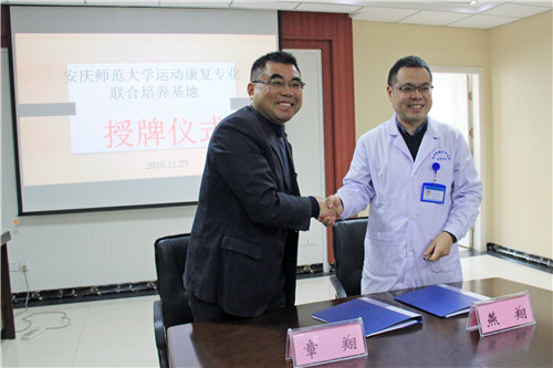 安慶師范大學(xué)于2017年成功獲批本科運(yùn)動(dòng)康復(fù)專業(yè)并順利招生,著力培養(yǎng)具有一定發(fā)展?jié)摿皠?chuàng)新精神、具有較強(qiáng)實(shí)踐能力的物理治療師和運(yùn)動(dòng)損傷防護(hù)師。安慶師范大學(xué)副校長張群表示,聯(lián)合培養(yǎng)基地的成立,將對(duì)學(xué)校運(yùn)動(dòng)康復(fù)專業(yè)人才培養(yǎng)工作發(fā)揮良好的促進(jìn)作用,并帶動(dòng)安慶乃至安徽康復(fù)醫(yī)療事業(yè)的發(fā)展。校方將獲得石化醫(yī)院優(yōu)質(zhì)資源,致力于人才培養(yǎng)質(zhì)量,提高學(xué)生理論與實(shí)踐相結(jié)合的能力,以造就大批優(yōu)秀康復(fù)人才。