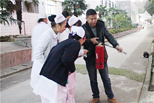 許海洋教官根據(jù)醫(yī)院火災的特點,結合實際火災反面案例,重點講解了如何開展消防隱患排查、火災初起階段的撲救方法、火場內如何逃生自救、如何進行火災初期撲救、消防器材如何操作使用等消防安全知識。隨后,現(xiàn)場示范如何使用滅火器撲滅初期火災,并讓參會人員實地操作滅火器材,親身了解滅火注意事項,切實使醫(yī)護人員了解火災危險性,懂得基本消防常識,學會報警、撲救初期火災和組織人員疏散。