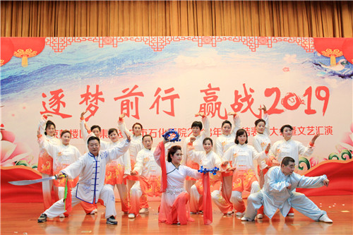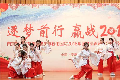 豪情歡歌辭舊歲,喜氣開篇迎新年,一曲《相親相愛》拉開文藝匯演序幕?!吨袊兜馈贰ⅰ栋滓嘛L(fēng)采》、《愛我石醫(yī)》三大篇章19個(gè)節(jié)目輪番登場,昂揚(yáng)的歌聲,唱出了石醫(yī)人的斗志豪情;逗趣的小品,演出了醫(yī)護(hù)的酸甜苦辣;曼妙的舞姿,舞出了白衣天使的活潑靈動(dòng);鏗鏘的朗誦,誦出了醫(yī)者的仁心仁術(shù)。醫(yī)聯(lián)體“新成員”大觀院區(qū)帶來養(yǎng)身氣功《八段錦》,真功夫表演贏得現(xiàn)場掌聲不斷?!笆t(yī)院不一般,南聯(lián)北移擴(kuò)市場。三級醫(yī)院齊心創(chuàng),保障健康民稱贊?!逼呦膳褶D(zhuǎn)悠揚(yáng)的黃梅調(diào)《黃梅新頌》,贊遍了醫(yī)院改制來的每一次巨變,見證了每一個(gè)榮耀的里程碑時(shí)刻,為迎春文藝匯演畫下圓滿的句點(diǎn)。相聚的美好時(shí)光總是短暫的,一家人相約來年再見,讓我們期待2019醫(yī)院更美好。