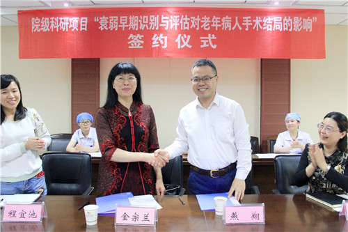隨后,燕院長(zhǎng)與金主任就院級(jí)項(xiàng)目“衰弱早期識(shí)別與評(píng)估對(duì)老年病人手術(shù)結(jié)局的影響”進(jìn)行了現(xiàn)場(chǎng)簽約。
