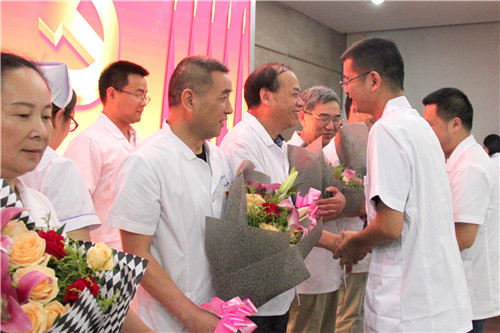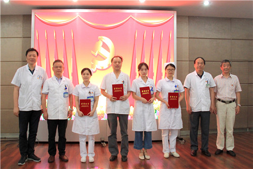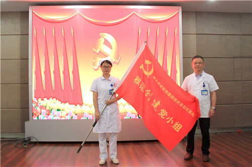 金陵藥業(yè)股份有限公司副總裁、醫(yī)院董事長、黨委書記陳勝宣讀通報(bào),并號召全體黨員和各級黨組織要以先進(jìn)為榜樣,實(shí)戰(zhàn)實(shí)干,拼搏進(jìn)取,加強(qiáng)組織建設(shè),打造一批特色鮮明、質(zhì)量過硬、群眾認(rèn)可的醫(yī)院黨建品牌,在全院掀起品牌創(chuàng)建、學(xué)習(xí)宣傳的高潮,為創(chuàng)三級醫(yī)院、建設(shè)醫(yī)聯(lián)體作出新的更大貢獻(xiàn)。院領(lǐng)導(dǎo)為醫(yī)院先進(jìn)黨小組及優(yōu)秀黨員頒發(fā)榮譽(yù)證書,為品牌創(chuàng)建黨支部、模范創(chuàng)建黨小組及榜樣黨員授旗、授牌。
