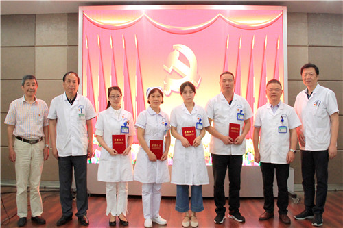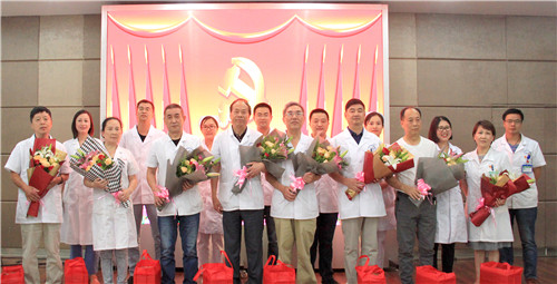 截至今年,全院共有9名在職黨員黨齡超過30年,“傳承帶新”環(huán)節(jié),由新黨員代表為老黨員周長江、花杰、謝志霞、周傳毅、潘梅英、孫天中、汪奠亞、胡來寶、范騰獻(xiàn)花致意,感謝他們多年來為醫(yī)院發(fā)展所做出的貢獻(xiàn)。隨后,新黨員方小林、陳誠、方向東、王江平、阮宏智舉起右手,在鮮紅的黨旗下莊嚴(yán)宣誓,為共產(chǎn)主義奮斗終身。
